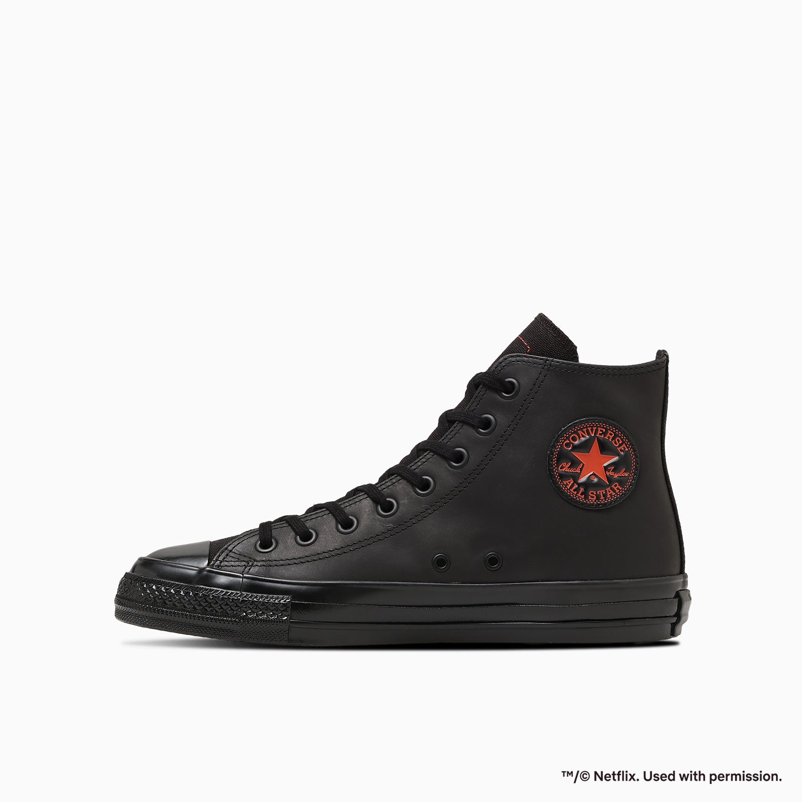 定番シリーズ「ALL STAR AGED(オールスター エイジド)」をベースに、ブラックを基調とし、象徴的なレッドをアクセントにしたNetflixの世界観をシューズ全体で表現。