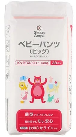 この度、販売開始した「SmartAngel ベビーおむつ テープ Mサイズ」は、テープタイプの紙おむつで、赤ちゃんの快適さ、おむつ交換の際の利便性を追求しながらも、価格は46枚入りで699円(768円税込)と、お求めやすい価格を実現しました。