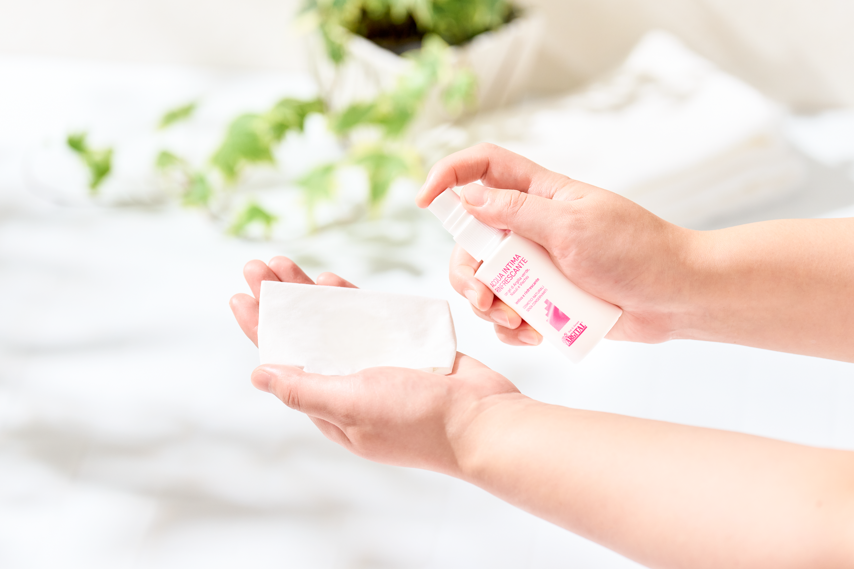 トイレットペーパーなどに適量(3~5プッシュ目安)スプレーし、デリケートエリアをやさしく拭きとってください。
