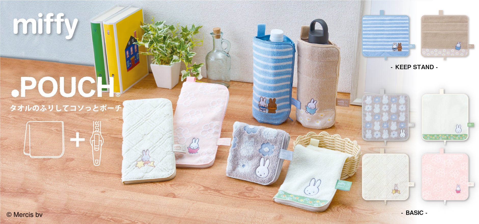 株式会社アイアップ(代表取締役社長:中田理生/所在地:東京都渋谷区)は、タオルのふりしてコソッとポーチでおなじみの「どっとポーチ(.POUCH)」から、新たに「ミッフィー」のデザインを6種発売いたします。「どっとポーチ ベーシック」で4種、保温・保冷機能の備わった「どっとポーチ キープスタンド」で2種の、合計6種です。