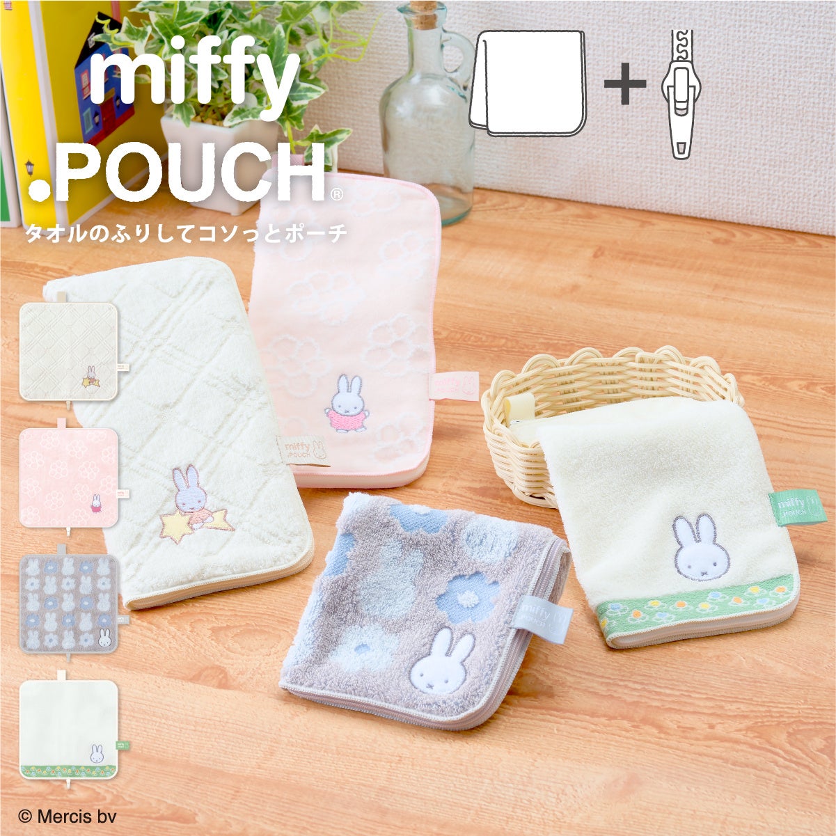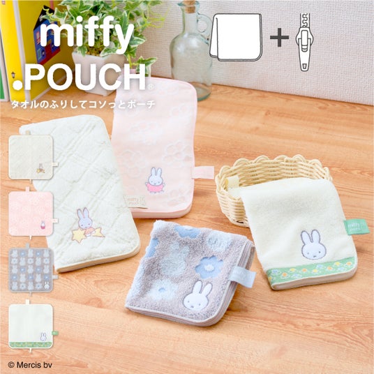 タオルのふりしてコソッとポーチの「どっとポーチ」に、ミッフィーデザインが新たに2アイテム登場!アイアップ公式オンラインストアで好評予約受付中。