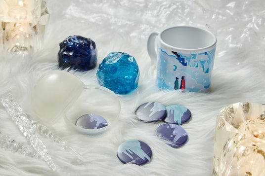 キャンドルやオリジナル缶バッジなどの氷瀑グッズ