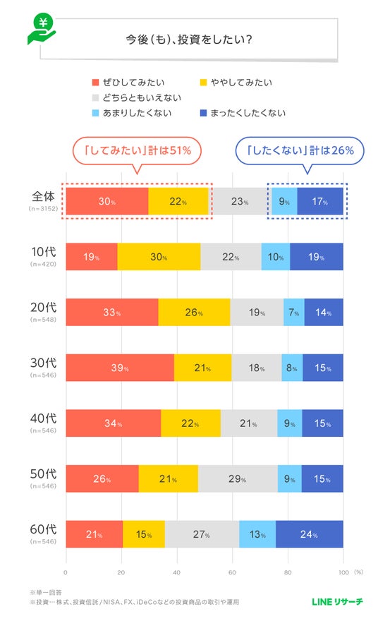 LINEリサーチ、全国の15~69歳の男女を対象に、投資に関する調査を実施
