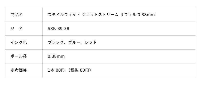 スタイルフィット ジェットストリーム リフィル 0.38mm