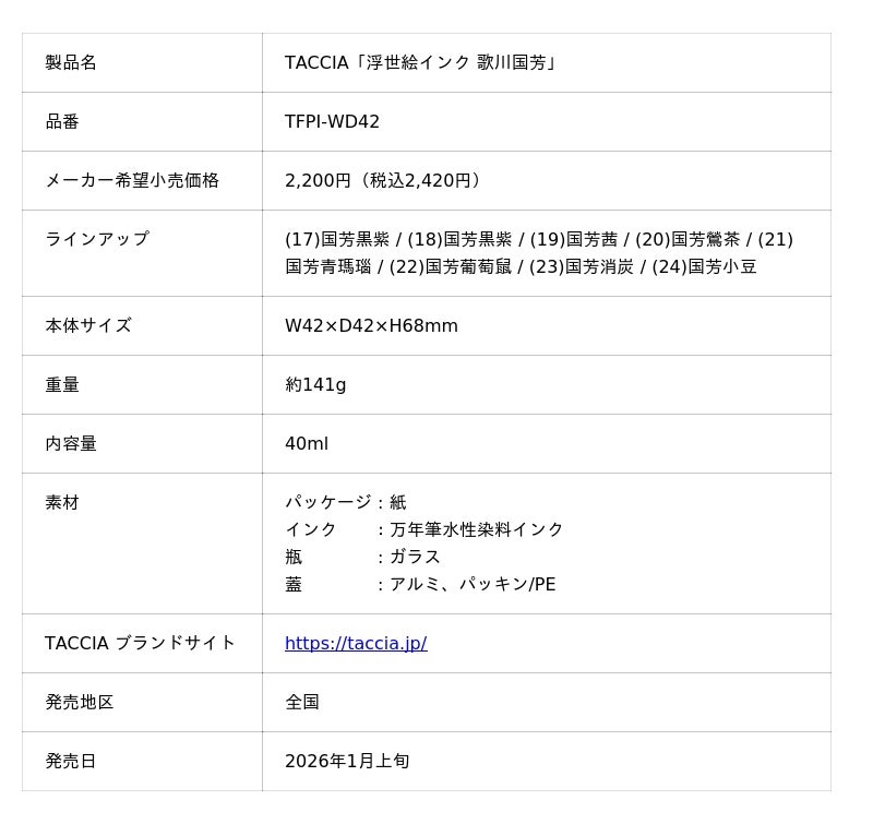 ナカバヤシ株式会社(本社:大阪市中央区、社長:中林一良)は浮世絵をイメージした万年筆用インク「浮世絵インク 歌川国芳」を全国で2026年1月上旬より発売しました。