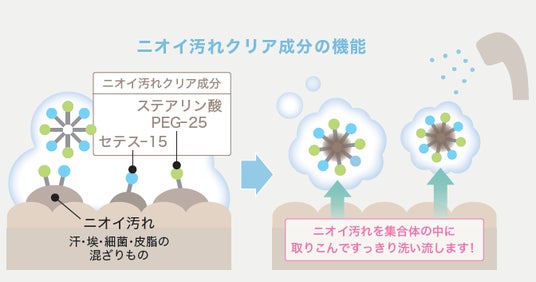 ●ニオイの元となる汚れを取り込む「ニオイ汚れクリア成分*4」配合