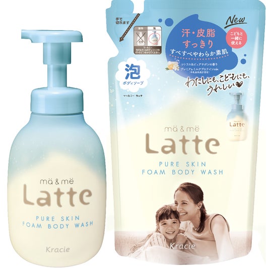 クラシエ株式会社(ホームプロダクツカンパニー)は、親子で一緒に使えるヘアケア&スキンケアを展開する「ma&me Latte(マー&ミー ラッテ)」から、汗・皮脂・ニオイ汚れをすっきり洗い流すボディソープ「ピュアスキン」ラインを2026年3月6日(金)に新発売いたします。やさしいふんわり泡の「泡で出てくるタイプ」と、うるおいを残しながら洗う「液体タイプ」の2種です。