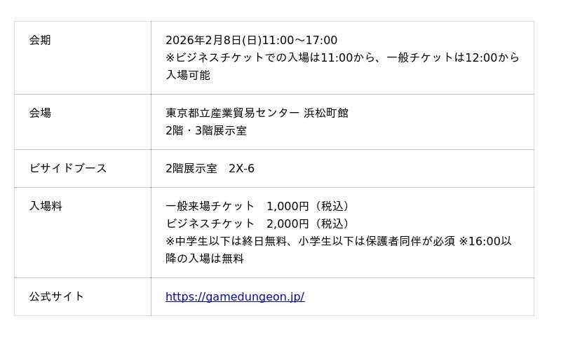 さらに、本作のリリースに合わせ、2026年2月8日(日)に開催されるインディーゲーム展示会「東京ゲームダンジョン11」へのプレイアブル出展も決定いたしました。ビサイドブースでは、本作をいち早くご体験いただけます。