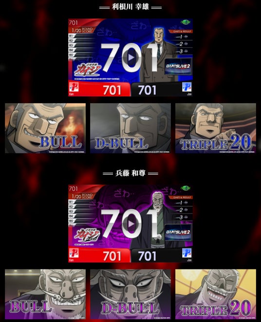アワードムービー第1弾は、アニメ『カイジ』第1期の登場人物が登場。声優・立木文彦氏の撮り下ろしボイスも搭載されている特別仕様のデジタルコンテンツです。ダーツライブ3、ダーツライブ2でご使用いただけます。