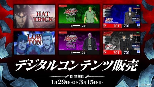 また、キャンペーン期間中は、アニメ『カイジ』をフィーチャーした多彩なデジタルコンテンツを販売。さらに、SNSキャンペーンも実施いたします。