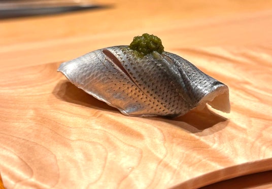青唐辛子とライムの風味でいただく江戸前鮨の代表的なネタ「コハダ」