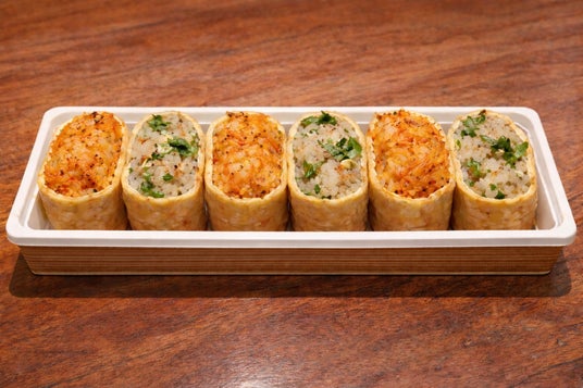 甘さと辛さが特徴のグリーンカレーに対し、「今度は甘さと酸味を軸にしよう」と白羽の矢が立ったのがトムヤムクンでした。酢飯自体は通常のまま、酸味と辛味が効いたトムヤムクン風味の海老を混ぜ込むことで、いつもの稲荷寿司を味わいながらトムヤムクンの風味が浮かび上がる、これまでに食べたことのない稲荷寿司が誕生しました。