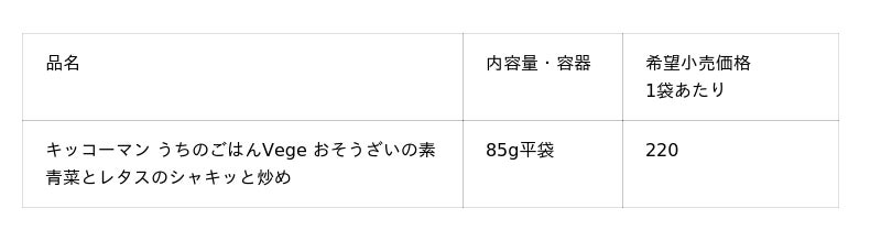 キッコーマン食品株式会社は、2 月2 日に、1/2 日分の野菜(*)を手軽にとることができる「キッコーマン うちのごはんVege おそうざいの素」シリーズから「青菜とレタスのシャキッと炒め」を全国で新発売します。