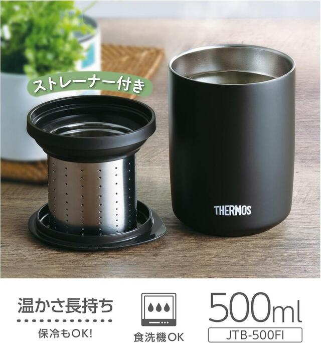 茶こし付きで直接お茶を淹れられ、高い保温・保冷力を備えたサーモスの「真空断熱ティータンブラー/JTB-500FI」。全パーツ食洗機対応で、日常のお茶習慣を心地よく支えてくれますよ。