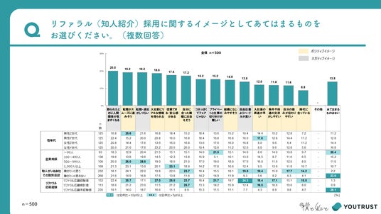 さらに、「リファラル採用に対して抱くイメージ」について尋ねたところ、ポジティブ・ネガティブの両面が挙げられました。