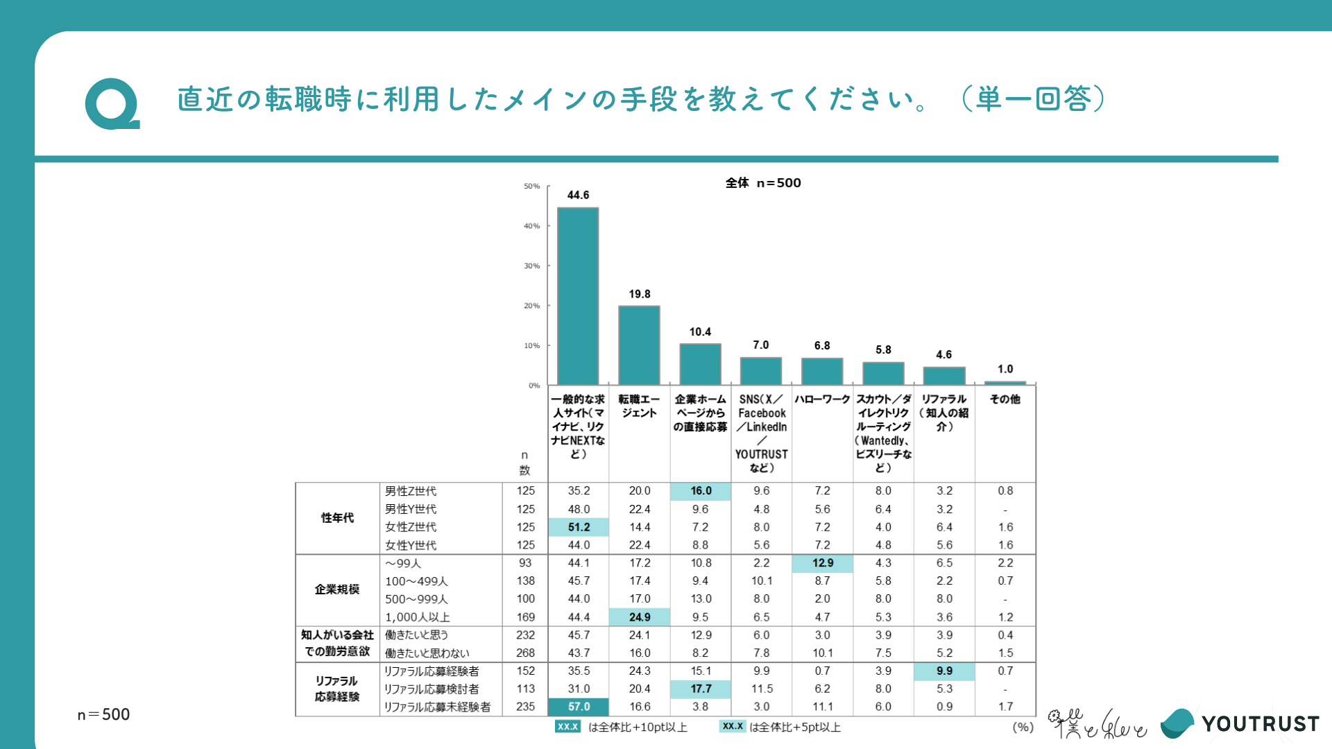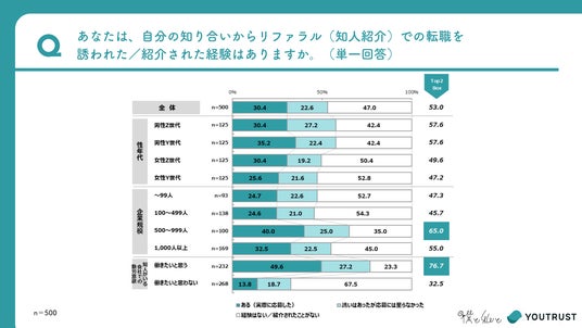 リファラル採用の経験は約半数!世代・性別を問わず、転職手段の一つに