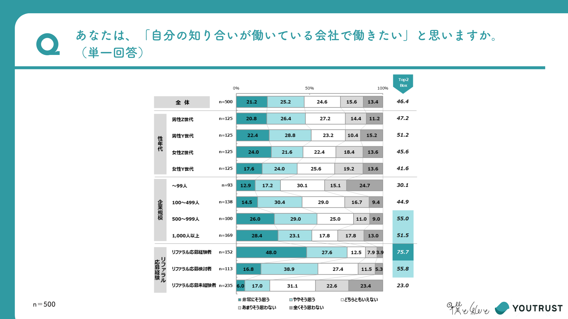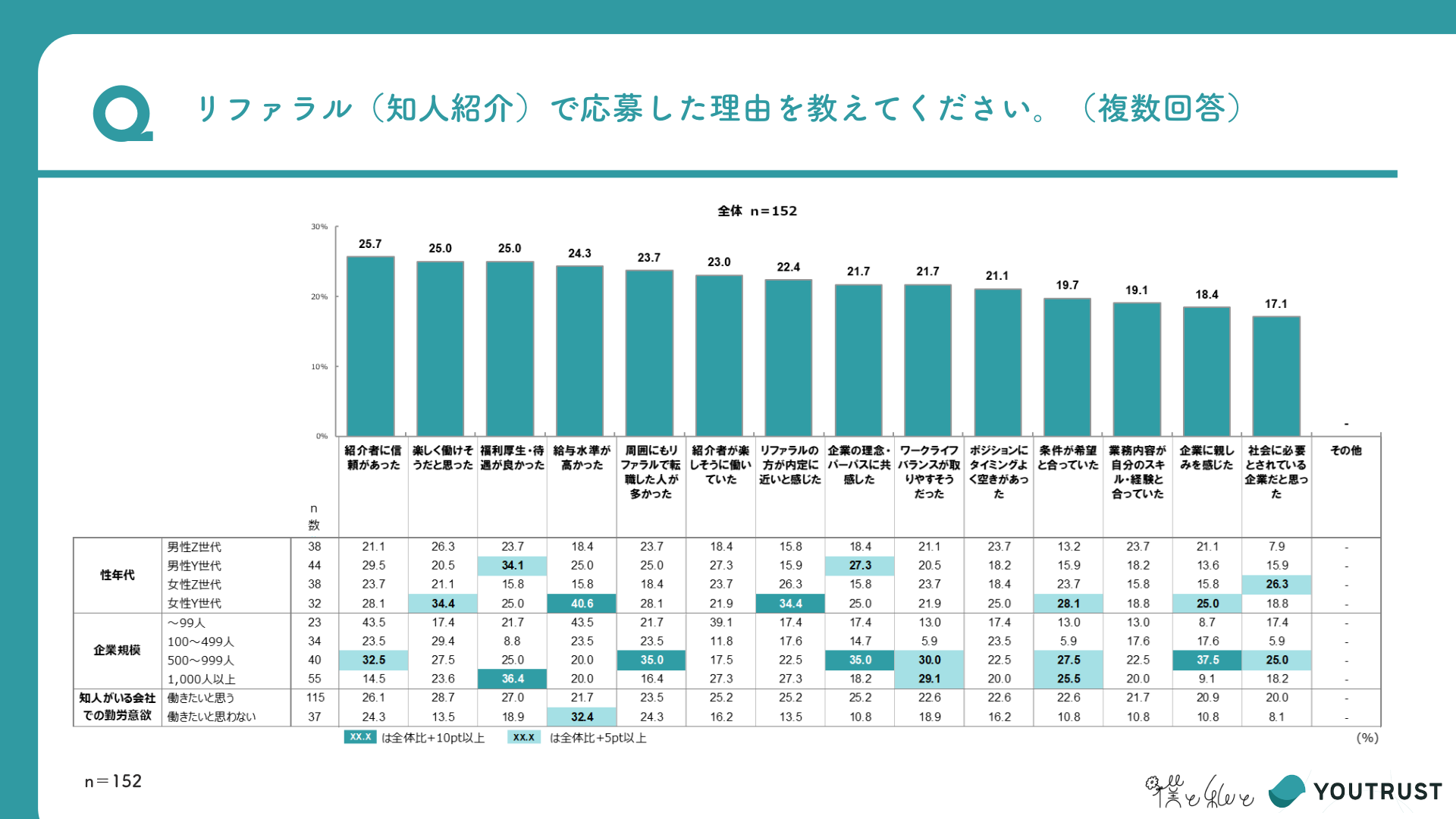 リファラルでの応募理由1位は「紹介者への信頼」。Z世代は働くイメージ、Y世代は条件面なども重視