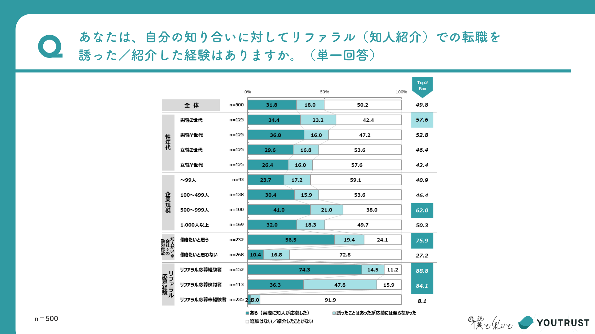 - リファラル採用の経験は約半数!世代・性別を問わず、転職手段の一つに