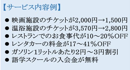 グルメ・レジャー・ショッピング・スポーツ等、様々な分野で140万件と幅広いサービスを取りそろえており、当サービスを経由することで、多種多様なサービスを通常より割引価格で利用することが可能となります。