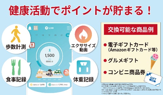 アプリでは、歩数や体重・食事記録といった健康増進活動を通じて電子マネーやギフト商品等に交換できるポイントを獲得することができ、管理栄養士が監修した健康レシピの閲覧、AIによる健康増進メニューの作成等、健康に繋がる様々な情報を提供しており、そうした点が評価され、2022年度にはグッドデザイン賞を受賞いたしました。
