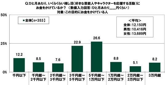 - 「推し活にお金をかけている」35.3%、かけているお金 平均12,150円/月