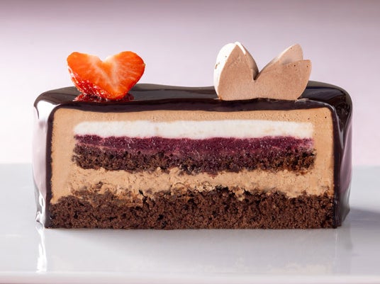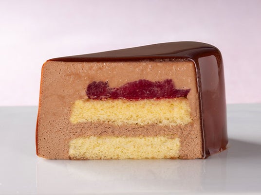 ムースの間には、甘酸っぱいグリオットチェリーのジュレを忍ばせ、フルーティーなアクセントを加えました。