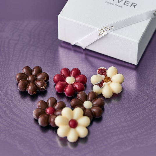 可憐な花をかたどった、上品なタブレットチョコレート。