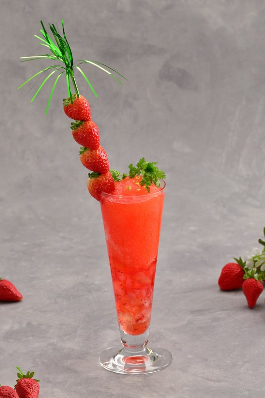 ・STRAWBERRY ZIPPER(ストロベリージッパー) 3,500円フレッシュいちごが12個分味わえる贅沢な一杯。地元「あきた野ワイナリー」の白ワインジュレを合わせたフローズンスタイル。
