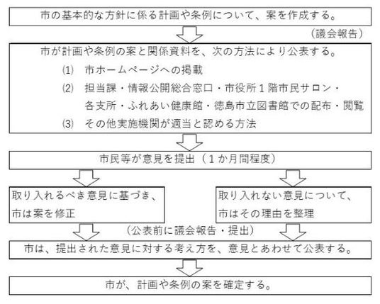 徳島市では、市の基本的な方針を定める計画を策定する場合に、あらかじめ市民の皆さんから意見を募集しています。ぜひ市民の皆さんの声をお聞かせください。
