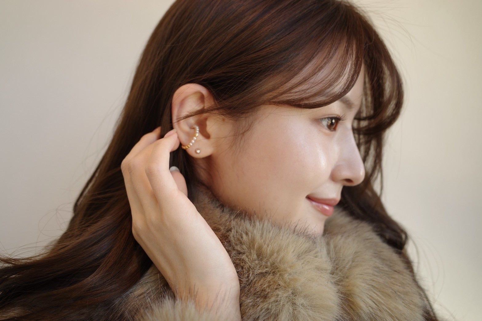 山田ありさ ご本人着用イメージ【イヤーカフ 淡水パール・ダイヤモンド側】