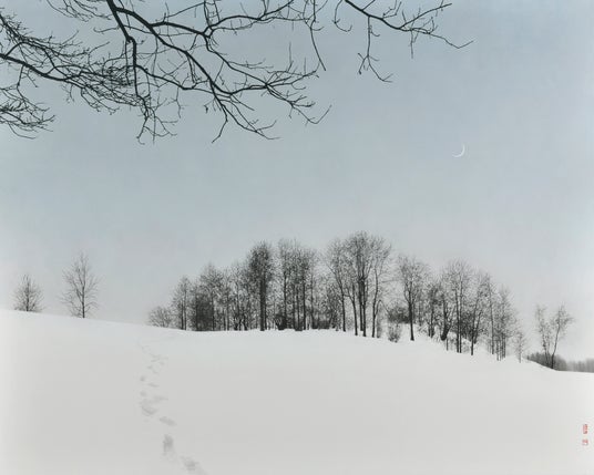 描かれているのは自然そのものですが、同時に観る者の感情や記憶の揺らぎを呼び覚まし、精緻な枝ぶりの描写や深い霧の濃淡の中に作家の透徹した観察眼が静かに伝わります。画中の自然は神々しさを帯び、観る者を風景の中に身を置くような体験へと誘います。