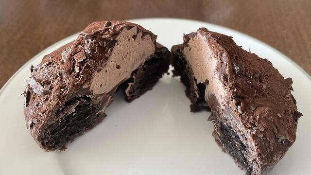 「生ショコラフレンチ ノワール」は、生ショコラフレンチ生地に、ショコラ風味のグレーズをコーティング。ホワイトチョコがトッピングされています。