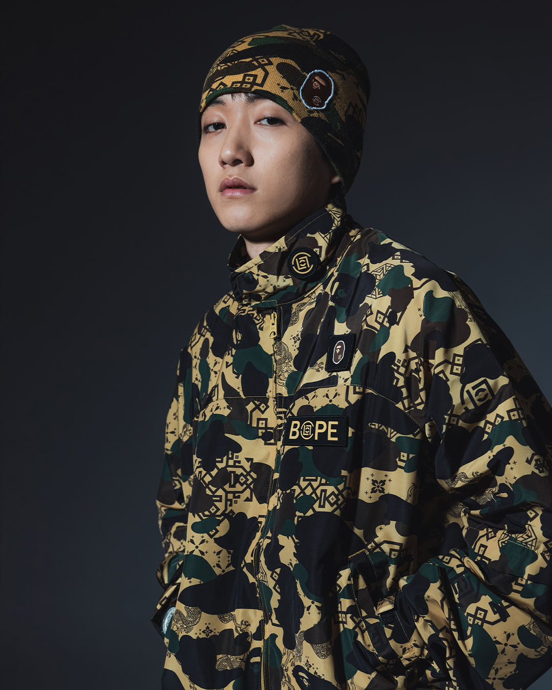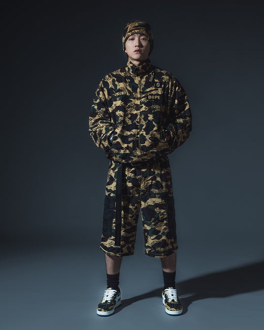 本カプセルコレクションでは、CLOTのシグネチャーである「Silk Royale」パターンと、BAPE(R)の象徴的な「1ST CAMO」を融合させた、唯一無二のビジュアルを展開。伝統的な中国美学のエッセンスを随所に取り入れながら、現代ストリートウェアならではのエネルギーと存在感を表現しています。