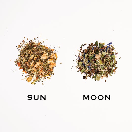 <SUN&MOON> 2種類をお楽しみいただけるセット。 SUN:太陽の光をたっぷり浴びたレモンのように、明るくみずみずしい香りが広がるハーブティー。 MOON:夜の静けさにそっと広がる、カモミールやリンデンなどの優しい甘み。深く息を吸い込み、穏やかな眠りへと心をゆだねるハーブティー。 ¥1,980(税込)