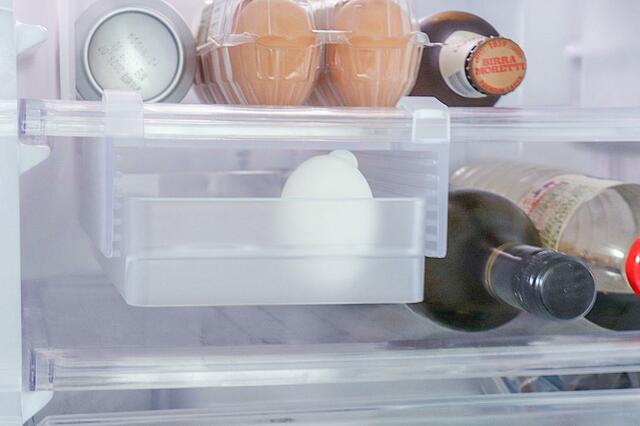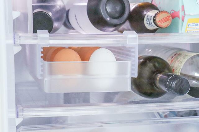 わが家で使っている冷蔵庫はコンパクトで、扉部分に卵を入れる場所がありません。