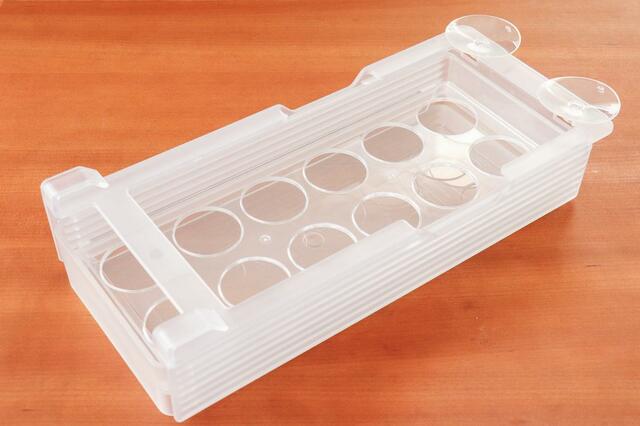 冷蔵庫の棚板につけることで、卵ラックを増設できるアイテムです。