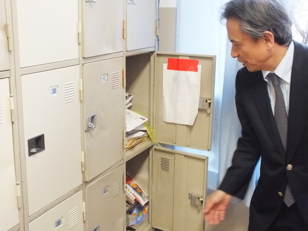 彦坂先生:ほら見てください。ひとつもロッカーの扉が外れていないでしょ? これって麻布の高学年のクラスでは珍しいんです。