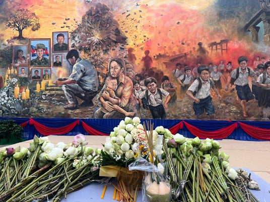 シェムリアップにある、カンボジアの今回の戦争を描いた絵画