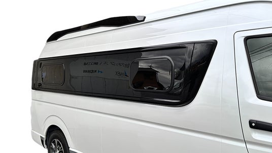 本モデルはハイエースのスーパーロングをベース車としたワイドボディー・ハイルーフのバンコンです。シリーズ最大のゆとりが生む上質な空間と、進化した「二人旅」のスタイルを、ぜひ会場にてご体感ください。