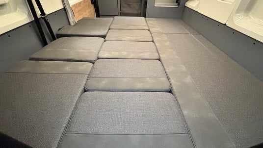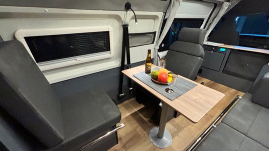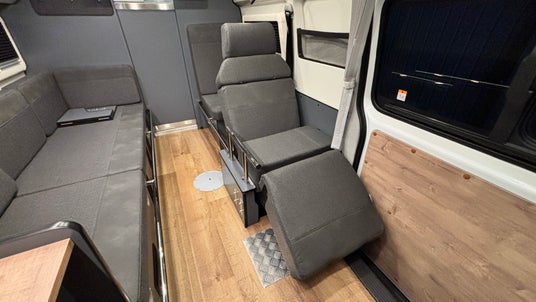 リコルソの象徴である対面ソファに加え、セカンドの1人掛け用マルチシート(FASPシート)を後ろ向きにセットすることで、停車時には大人数がテーブルを囲める「コの字型」のダイネット構成が可能です。旅先での語らいや食事の時間を、より一体感のある空間で楽しめます。就寝時には、簡単な操作で最大1,940mm×1,680mmの広大なベッドへと展開(3名就寝)。大人2人がゆったりと寛げるのはもちろん、小さなお子様や大切なペットと一緒に家族全員でリラックスした時間を過ごすことができます。