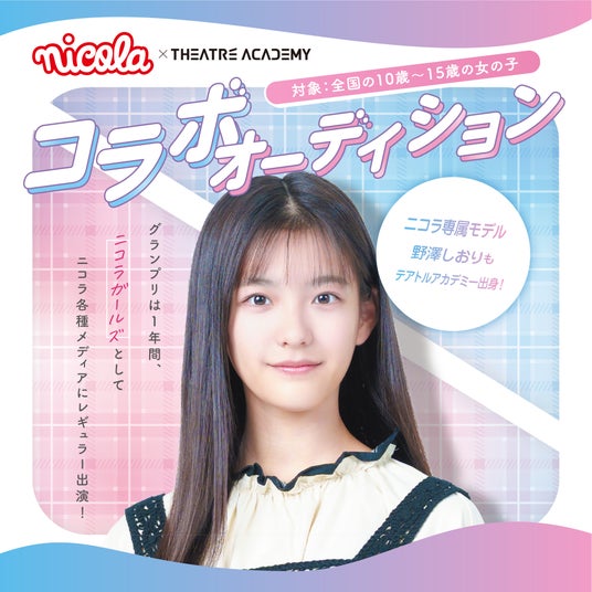 1980年の創業以来、さまざまな分野で活躍できるタレントを輩出し続けてきたテアトルアカデミーと、ローティーン向けファッション雑誌『ニコラ』による特別コラボオーディションです。