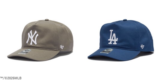 1947年に米国ボストンでスタートしたカジュアルライフスタイルブランドである’47(フォーティーセブン)は、5パネル構造を採用したシルエット「HITCH(ヒッチ)」より、MLB(メジャーリーグ・ベースボール)のニューヨーク・ヤンキース、ロサンゼルス・ドジャース、サンディエゴ・パドレスの球団ロゴをフロントに配したキャップを、公式オンラインストア、'47長野・沖縄をはじめ全国の’47取扱店舗にて発売いたしました。