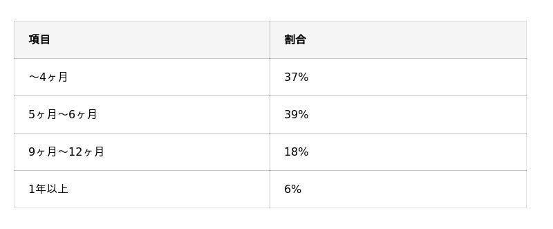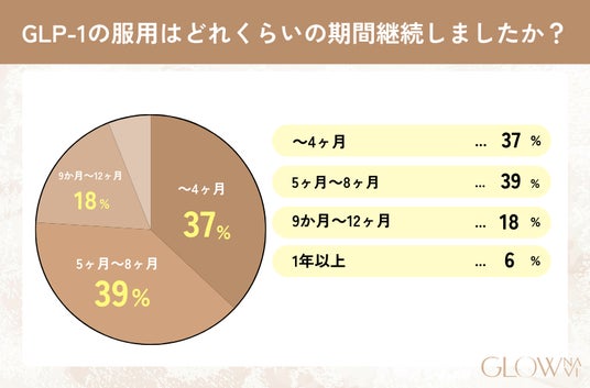 服用を継続した期間では、「5ヶ月~6ヶ月」(39%)、「~4ヶ月」(37%)に回答が集まり、比較的短~中期間に回答が集中しました。一方で、半年以上継続した人も一定数おり、服用期間にはばらつきが見られます。