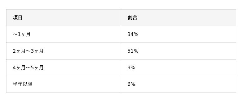 - 効果を実感し始めた時期は「2ヶ月~3ヶ月」(51%)が最も多い。全体の85%が3ヶ月以内に効果を実感している