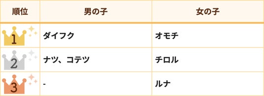 男の子では「コテツ」や「ゴマ」など和風な名前が目立つのに対し、女の子では「ルナ」や「チロル」など、少し洋風で可愛らしい響きの名前もランクインする傾向にありました。