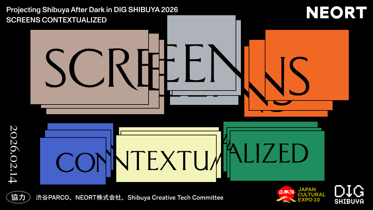 デジタルテクノロジーを駆使した新しいアートのためのプラットフォームを運営するNEORT株式会社(代表取締役:高瀬俊明、本社:東京都品川区、以下NEORT)は、2026年2月13日(金)~15日(日)に開催される「DIG SHIBUYA 2026」のオフィシャルプログラム「SCREENS CONTEXTUALIZED」において、参加アーティスト8名を発表いたします。