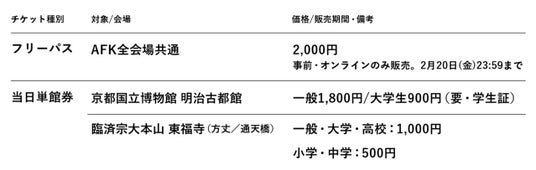 京都府、京都新聞、ARTISTS’ FAIR KYOTO実行委員会は、「ARTISTS' FAIR KYOTO 2026」(略称:AFK2026)のお得なフリーパスチケットを2026年1月16日(金)より2月20日(金)まで、オンラインにて販売いたします。