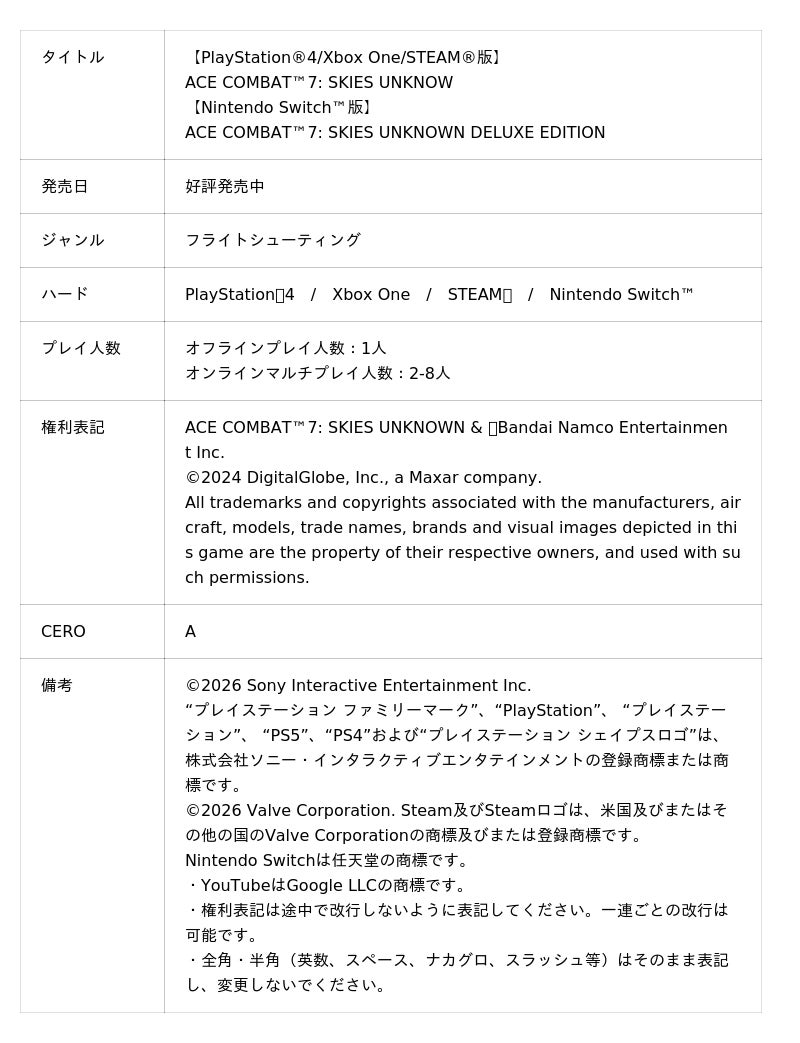 └Nintendo Switch(TM)版 特設ページ https://ace7.acecombat.jp/nsw/