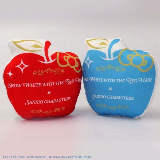 りんごの形をした大きさ30cm×40cm以内のクッション。グッズと一緒に飾れば、作品の世界観をより味わえます♪