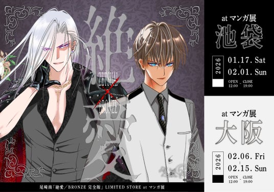 株式会社TORICO(本社:東京都千代田区、代表取締役社長:安藤拓郎)は、尾崎南「絶愛/BRONZE 完全版」LIMITED STORE at マンガ展 を2026年1月17日(土)~2月1日(日)まで同社が運営する東京・池袋の「マンガ展 池袋」にて、その後2026年2月6日(金)~2月15日(日)に大阪・谷町の「マンガ展 大阪」にて開催いたします。